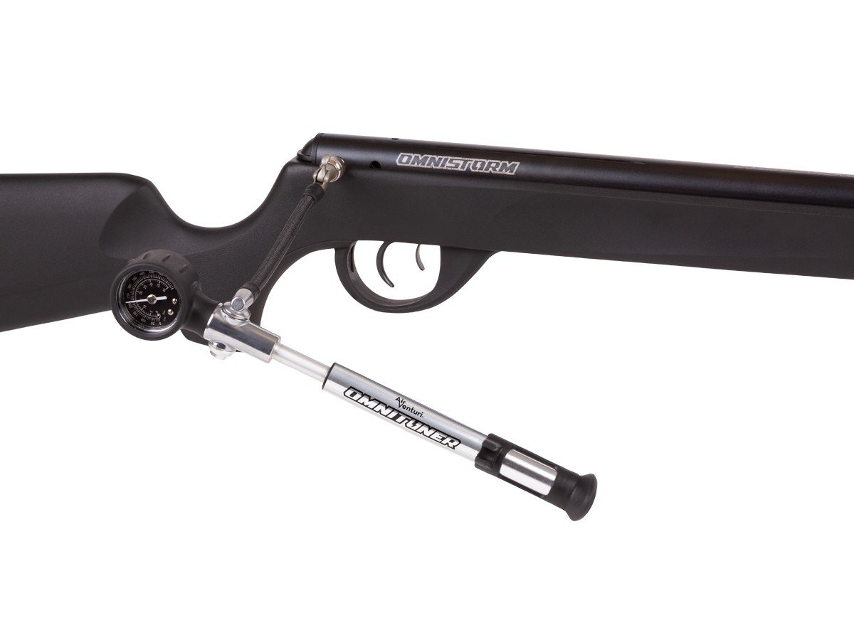Available in .177 or .22, the Air Venturi OmniStorm™ is a break barrel air rifle with adjustable operating pressures and cocking efforts. Using the included OmniTuner pump, tuning the rifle to your specific needs is quick and easy. Pressures range from 205 to 550 PSI with cocking effort from 25 to 50 lbs. That way a kid can use the same rifle as their parents with a simple adjustment via the tuning port.Air Venturi OmniStorm