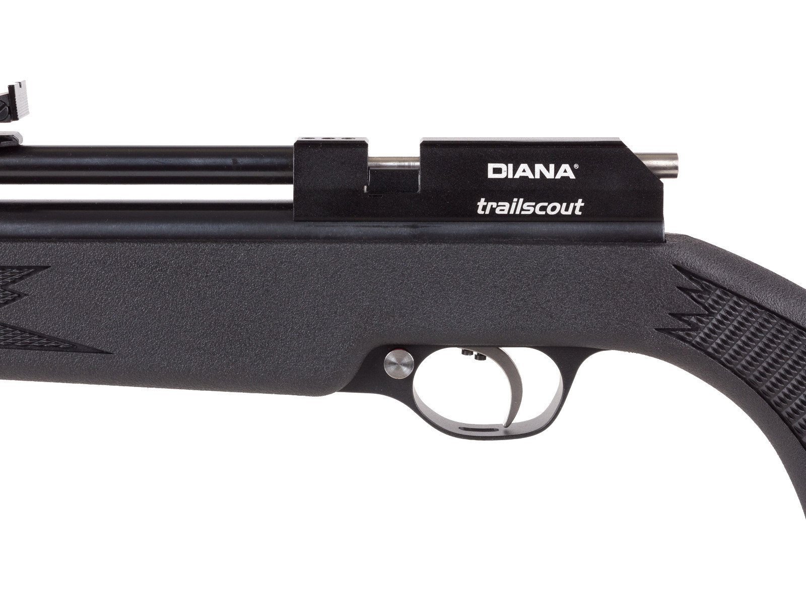 The Diana Trailscout gives you a fixed front blade sight and an adjustable rear notch sight for accuracy sighting right out of the box, plus an 11mm rail that lets you attach your favorite scope or dot sight. The all-weather synthetic stock is lightweight and sturdy, and the grip and forearm feature checkering that helps you hold it even if it gets a little wet.