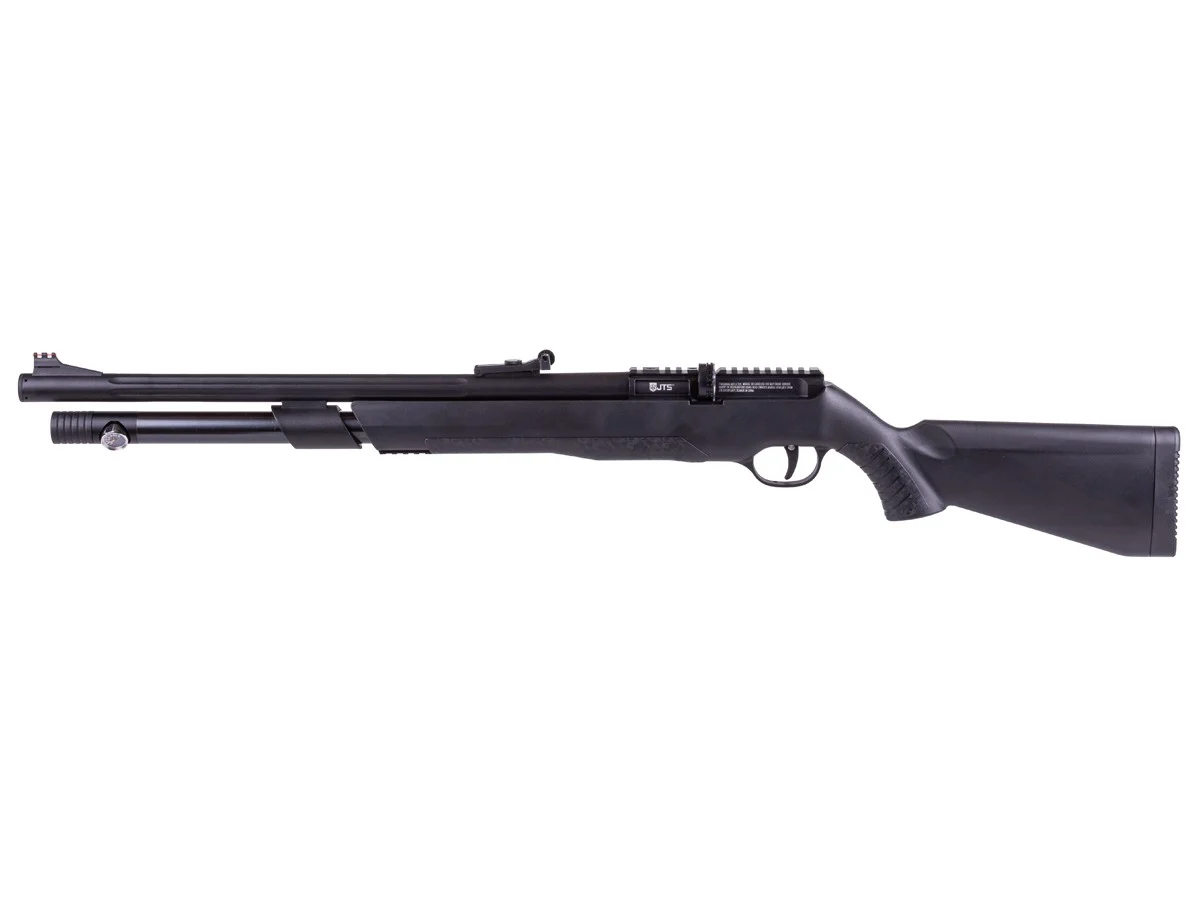 The JTS AirStryke utilizes a high-capacity pre-charged pneumatic (PCP) air reservoir engineered for optimal performance. This system allows multiple consistent shots without repeated pumping, providing efficiency during prolonged shooting sessions. Users benefit from reduced effort while maintaining peak shot velocity, making the rifle ideal for both competitive shooters and hunters.