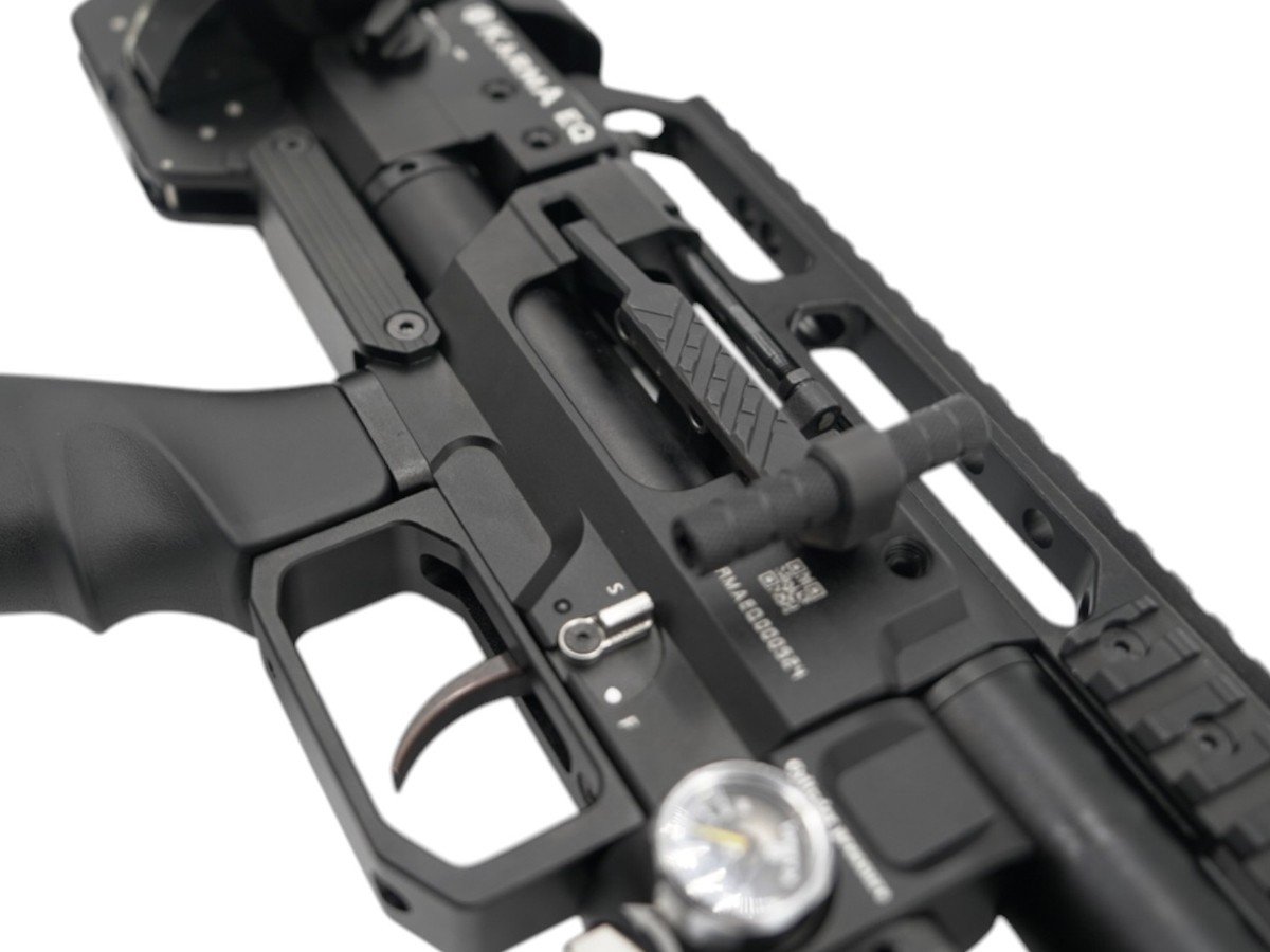 Karma EQ is a bullpup PCP air rifle with a focus on giving you high performance and flexible features you’d expect to pay more to get. You’ll appreciate the high shot count and precise power you get from the large air cylinder and plenum, so you get the capabilities you need for almost any type of shooting, from target practice, to pesting, hunting, and even competitions.